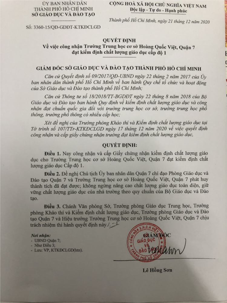 TRƯỜNG THCS HOÀNG QUỐC VIỆT